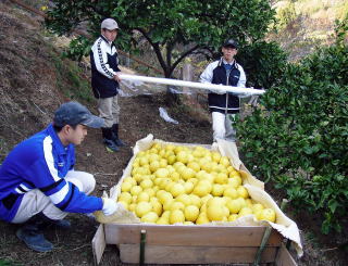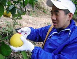 1年間学校全体で育てた光の村文旦 いよいよ、3月発売開始。 |