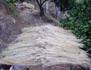 土の中に文旦を埋め込みます。 熟成しておいしい光の村文旦に変身。 |