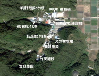 | 光の村文旦農園の場所 光の村に隣接する南の山に文旦農園はあります |