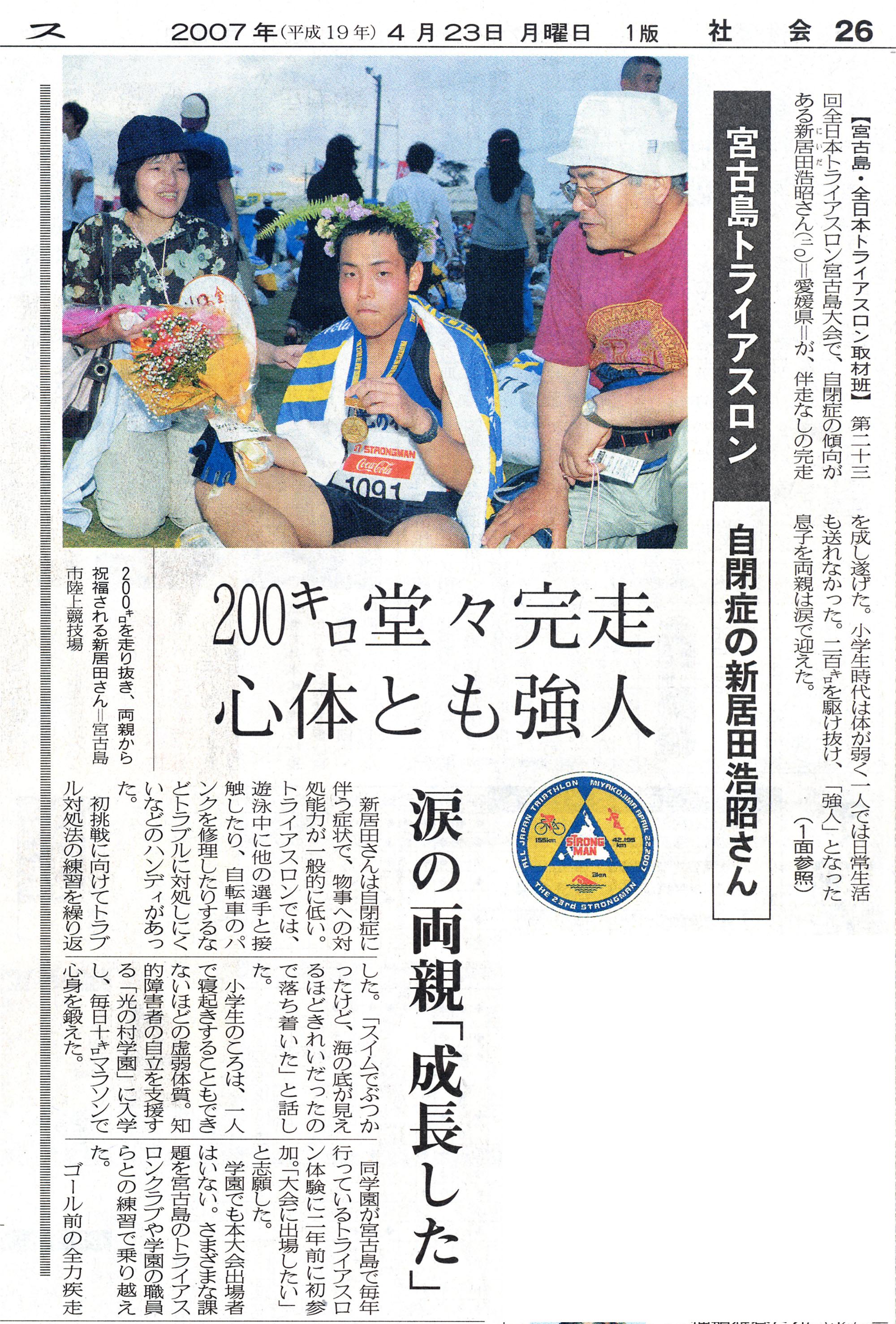 ※2007年全日本トライアスロン宮古島大会への挑戦 光の村養護学校土佐自然学園卒業生